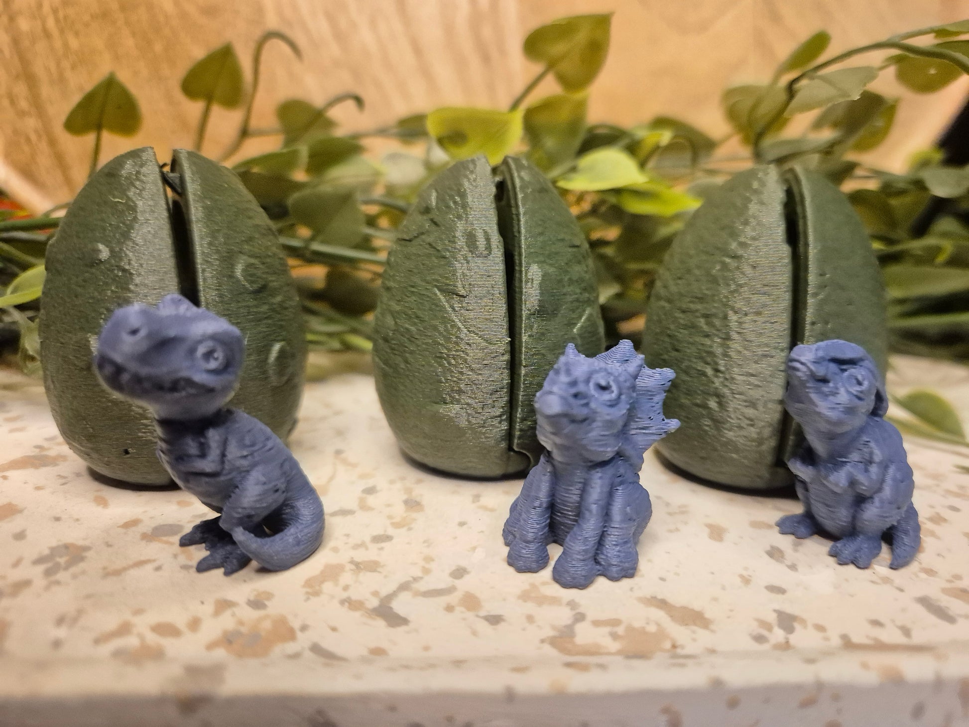 Chaque œuf cache un adorable petit dinosaure imprimé en 3D, prêt à sortir de sa coquille.